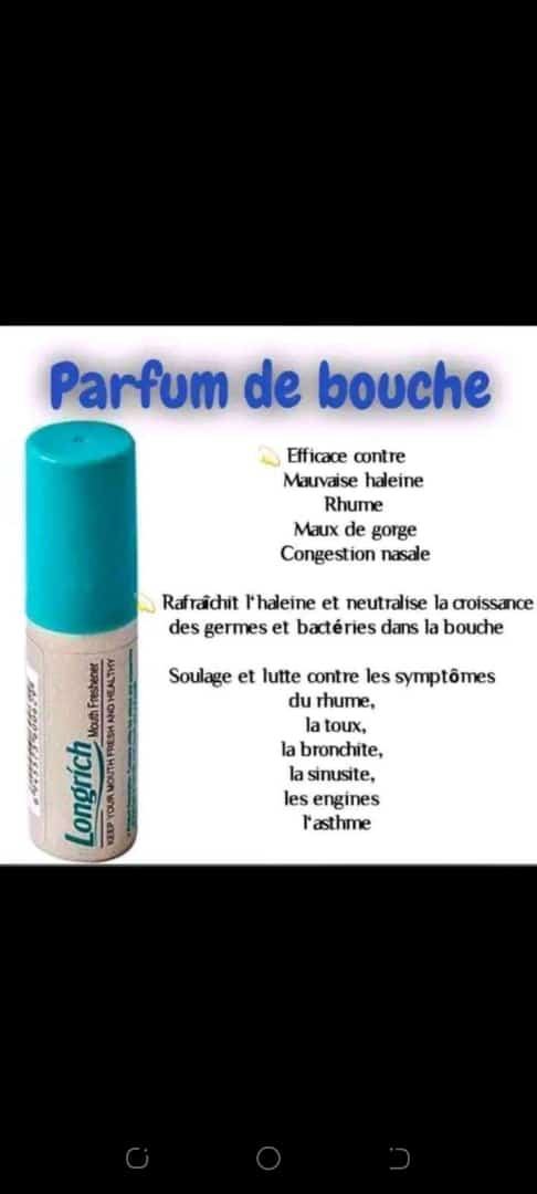 Découvrez notre parfum de bouche , la touche ultime pour une haleine impeccable à tout moment. Sa formule rafraîchissante élimine les mauvaises odeurs et laisse une sensation de propreté durable. Pratique et discret, il vous accompagne partout pour une fraîcheur instantanée.