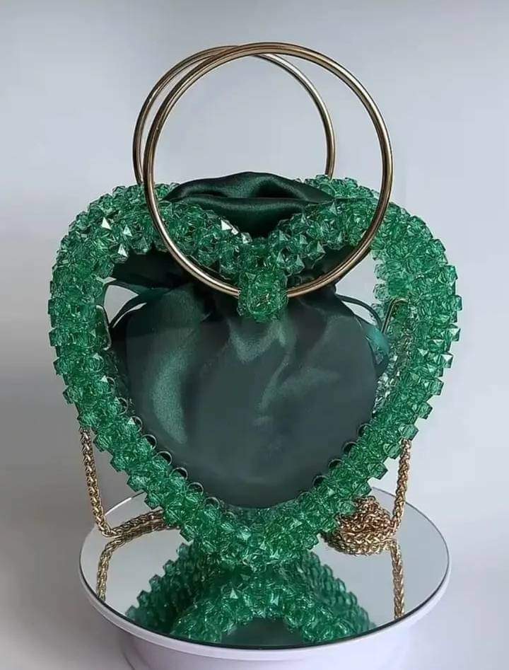 Laissez-vous séduire par l’éclat hypnotique de notre Sac cœur en perle vert turquoise. Fait main avec passion, chaque perle capte la lumière pour illuminer votre look🤩 . Son design audacieux en forme de cœur et ses anses métalliques chic font de ce sac plus qu’un accessoire: c’est la pièce maitresse qui affirme votre style unique. Parfait pour les soirées, les évènements spéciaux, ou simplement pour rendre votre quotidien extraordinaire.